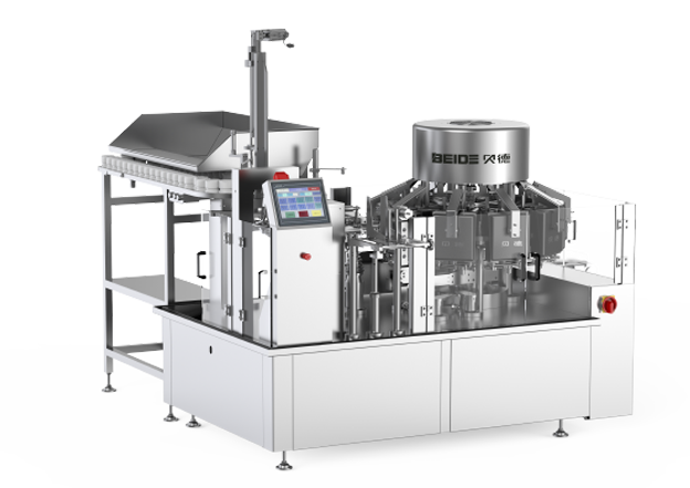 3. 設(shè)備操作方便,采用先進(jìn)的機(jī)械傳動系統(tǒng),實現(xiàn)自動取袋、自動稱量、自動裝料、自動抽真空、自動封口、自動卸料。