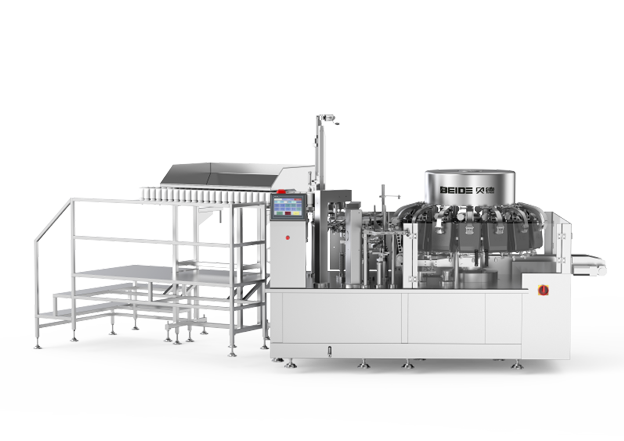 1. 基于BD-8ZK10-130款基礎(chǔ)上進(jìn)行改良,現(xiàn)一臺機(jī)器產(chǎn)能可達(dá)到原來兩臺機(jī)器產(chǎn)能的效率,包裝速度120包每分鐘,有效提升空間利用率和產(chǎn)能。